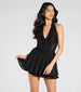 Chic and flirty will be your vibe in this little skater dress. The lace halter neckline. mesh corset bodice with sheer inserts. and tiered skater silhouette all add that sweet allure.