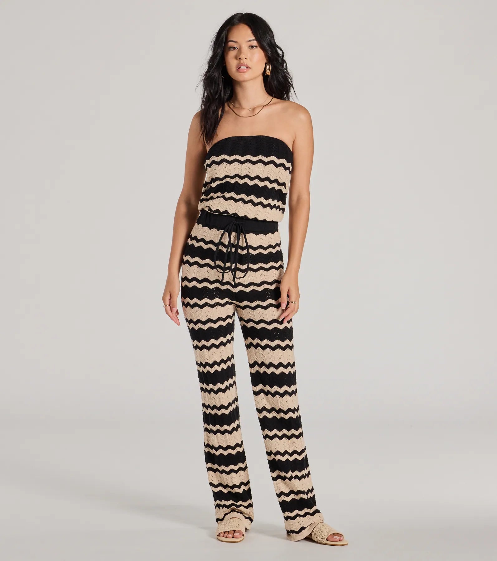Stylish In Stripes Strapless Wide Leg Knit Jumpsuit