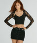 This breezy floral lace long sleeve bolero is stylishly sheer and perfect for layering over your fave tops and dresses! Designed with an airy floral lace fabric. it features long fitted sleeves. an open front. and an ultra-cropped hem for a chic look. Wear over a fit-and-flare skater dress with platform heels for a party.