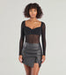 Amp up the sultriness of your night out 'fit with this fab sheer mesh bodysuit! It features a cowl neckline. a lined and padded bust. long fitted sleeves. all-over rhinestone embellishments. and a knit-thong bottom. The sheer mesh fabric offers a moderate stretch. Style with faux leather pants.