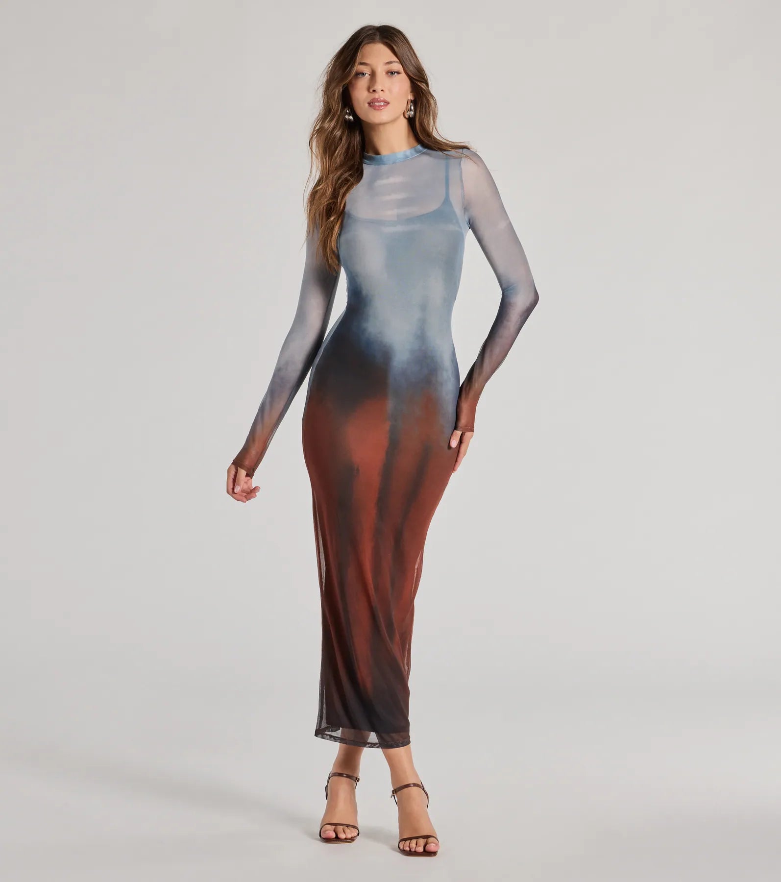 Sultry Silhouette Abstract Print Mesh Midi Dress