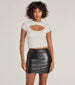 This sultry faux leather mini skirt brings a sleek look to every outfit. Style with a crop top and trendy flats.