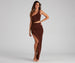 Sultry and spicy! Make jaws drop in this sleeveless maxi dress featuring a one-shoulder neckline. waist cutout details and a form-fitting silhouette with a high-cut side slit for a show of skin. Composed of stretchy slinky knit fabric. Finish the look in lucite mules.