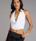 Sweet but never subtle—this cowl neck crop top is made to steal attention. The draped neckline and strappy detail give it that sultry edge. perfect for nights out.