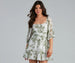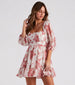 Look cute for Sunday brunch in this floral chiffon skater dress featuring three-quarter length puff sleeves. a square neck. and a pleated waistband on the skater silhouette. Showcase a peek of skin in the open-back design with tie closure and ruffled short-length hem. Composed of a chiffon floral lined fabric with no stretch. Perfect for styling with knee-high boots.