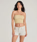 Radiate sunny vibes in the cutest cropped tube top! Designed with an adorable ditsy floral print on stretchy smocked knit fabric. it features a strapless straight-across neckline. a cropped hem. a dainty ruffled trim. and a form-hugging fit. Style with denim shorts and sneakers.