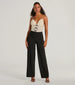 Create a date 'fit that radiates sweet and chic energy with this sleeveless jumpsuit. Designed with a sheer mesh top with woven bottoms. this adorable jumpsuit gives the look of an effortlessly fab complete outfit. It features a plunging V-neckline with a lined and padded bust. adjustable spaghetti straps that lead to a cross-back design. the cutest front bow accents with ruching at the waist. and a flattering wide-leg silhouette. Style with strappy mules.