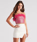 Showcase your sweet side darling in this glitter crop top for the perfect statement look! The crop top features a strapless marabou trim neckline and a back zipper with hook-eye closure. Style the strapless top with high-rise jeans for a birthday dinner!