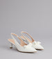 Polished with a playful twist. These patent slingback kitten heels feature a pointed toe topped with a bow for that perfect mix of chic and sweet.