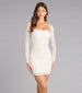 Built for the kind of entrance that makes the room go quiet. the Tabitha mini dress pairs rhinestone mesh-lined fabric with a sleek bodycon mini silhouette that glides with subtle sparkle. The square neck. delicate spaghetti straps. and attached long sleeve shawl come together in a look that feels effortlessly polished and undeniably memorable.