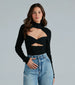 This sweater knit bodysuit showcases some skin for a sultry style with your favorite bottoms! It features fitted long sleeves. a mock neckline with a cutout design. a twist bust. a form-hugging fit. and a thong bottom with snap-button closures. Complete the look in a sleek mini skirt and boots.