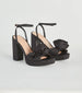Take a strut in these striking platform heels at cocktail parties or formal events! They feature a square toe. a curved toe strap with a rose applique. a block heel. and a thin ankle strap with adjustable buckle closure. Complete the look with an embellished clutch.