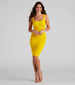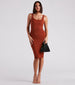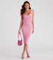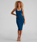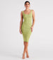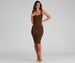 Take the plunge in this stylish midi sweater dress! The dress features a sleeveless scoop neckline. tank shoulder straps. and a bodycon silhouette on rib-knit fabric. Complete the look with mules.