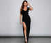 Take the lead with a formal dress that creates a stunning moment for your special occasion. Tania features a plunging V-neckline with ruffles. a spaghetti strap. a high side slit. and an A-line silhouette. The dress is composed of a lined crepe fabric that offers a form-hugging fit with a moderate stretch. Complete look with rhinestone heels and a tennis bracelet.