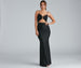 Step out like the main character you are in a dress that is a true one of a kind! Terra features a sleeveless sweetheart neckline. a metal O-ring at the center of the bodice. spaghetti straps. and a sexy cutout at the waist. The slim-fit waist leads to a curve-hugging mermaid silhouette. Terra is composed of a lined woven satin fabric that offers a slight stretch. Complete look with rhinestone heels and a faux fur wrap.Â