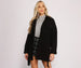 Layer up in a staple jacket that is perf enough to go with all your favorite casual outfits. The jacket features a collared neckline. long sleeves. a button-down front. two chest pockets with button closure. a removable tie waist belt. and a mid-thigh length. Complete look with a bodysuit and plaid skirt.