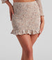 Get the cutest look for spring dates in this adorable mini skirt. It features a high-rise waist. smocked detailing throughout. a mini-length ruffled hem. and an all-over dainty ditsy floral print. Style with the matching crop top and a pair of mules.