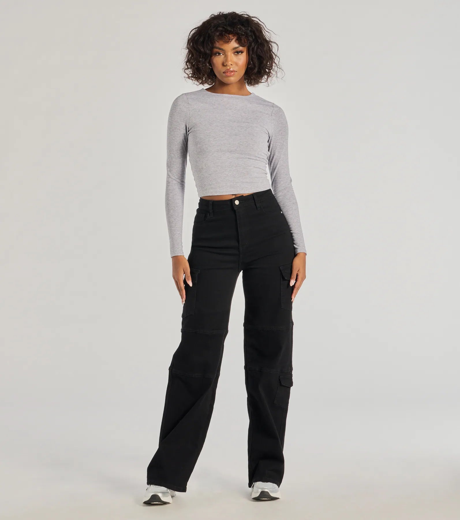 Get ready to rock these high-rise cargo pants. With a chic high-rise waist. belt loops. and cargo pockets. these pants are your go-to for effortless style and comfort.