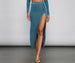 Take your look to the next level with a skirt that brings out your sassy side! The skirt features an elastic high-rise waist. a high side slit. and a midi-length silhouette. The skirt is composed of lurex knit fabric that offers a form hugging fit with a moderate stretch. Complete look with the matching crop top.Â