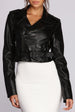 It's your time to slay in this fiercely on trend moto jacket! It features a collar with black stud detailing. an asymmetric zip front with zipper detailing along the sides. a front buttoned pocket. long sleeves. and a belted waist. The faux leather jacket features a chic all over snake print.