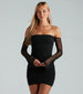 The perfect crepe mini dress to wear season to season! It features a timeless off-the-shoulder neckline. flattering sheer mesh flare long sleeves. a side ruched seam to accentuate your curves. and a bodycon silhouette. Complete the look with a ring set for a wine bar with the girls!