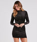 Oh my. what a marvelous sight you'll be in this glitter velvet mini dress destined for the dance floor! The mini dress features long sleeves. a mock neck with dual button closures. a bodycon silhouette. and a short-length hem. Style with fringe earrings and heels to complete the look!