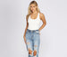 This adorable bodysuit is almost too sweet to handle! It features a sleeveless bodice. tank-like shoulder straps. a scoop neckline. a thong bottom with triple snap button closures. and an all over merrow edge trim. Bodysuit is composed of a stretchy knit fabric that offers a form hugging fit.