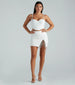 Radiate total glam girl energy in this fabulous rhinestone fringe mini skirt! It features a high-rise waist with a back zipper closure. a mini-length hem with a high-cut front slit with a sparkling rhinestone fringe trim. and a form-hugging fit. Style this faux leather skirt with a bustier top and strappy heels!