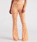 Whether you're jet-setting to an island resort or road-tripping up to a music festival. these swirl print flare pants are just the ticket to make a stylish entrance! They feature a high-rise waist. hip-hugging fit. and a flared hem on brushed stretchy knit fabric. Complete the look in a cute corset top.