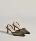 Show off your trendy status in these glam kitten heels featuring a closed pointed toe designed with sheer mesh material accented with mini rhinestone embellishments for a chic sparkle. The heels are secured with a sling-back strap and feature a padded faux leather insole.