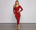 Hey. trendsetter! Stun in a ribbed midi dress for your next date night with bae! The dress features a V-neckline. long sleeves. a bar strap accent at the back. and a midi length silhouette. The dress is composed of a ribbed knit fabric that offers a form hugging fit with a moderate stretch. Complete look with clear mules.Â