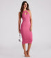 You'll be such a trendy babe in this adorable cutout sweater dress! Featuring a sleeveless high neckline with a racerback design. a front keyhole cutout at the bust. alluring side cutouts at the waist. a midi-length hem. and a curve-hugging silhouette. this dress is a perfect pick for a night out with the girls. Style with platform heels and a chic handbag.