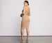 Keep your look on point and trendy in this chic twist back knit sweater dress! Featuring a partially open back and a mid-length. curve-hugging silhouette. this dress is perfect for the fall season. Dress it up with statement earrings for a cute fall date night.
