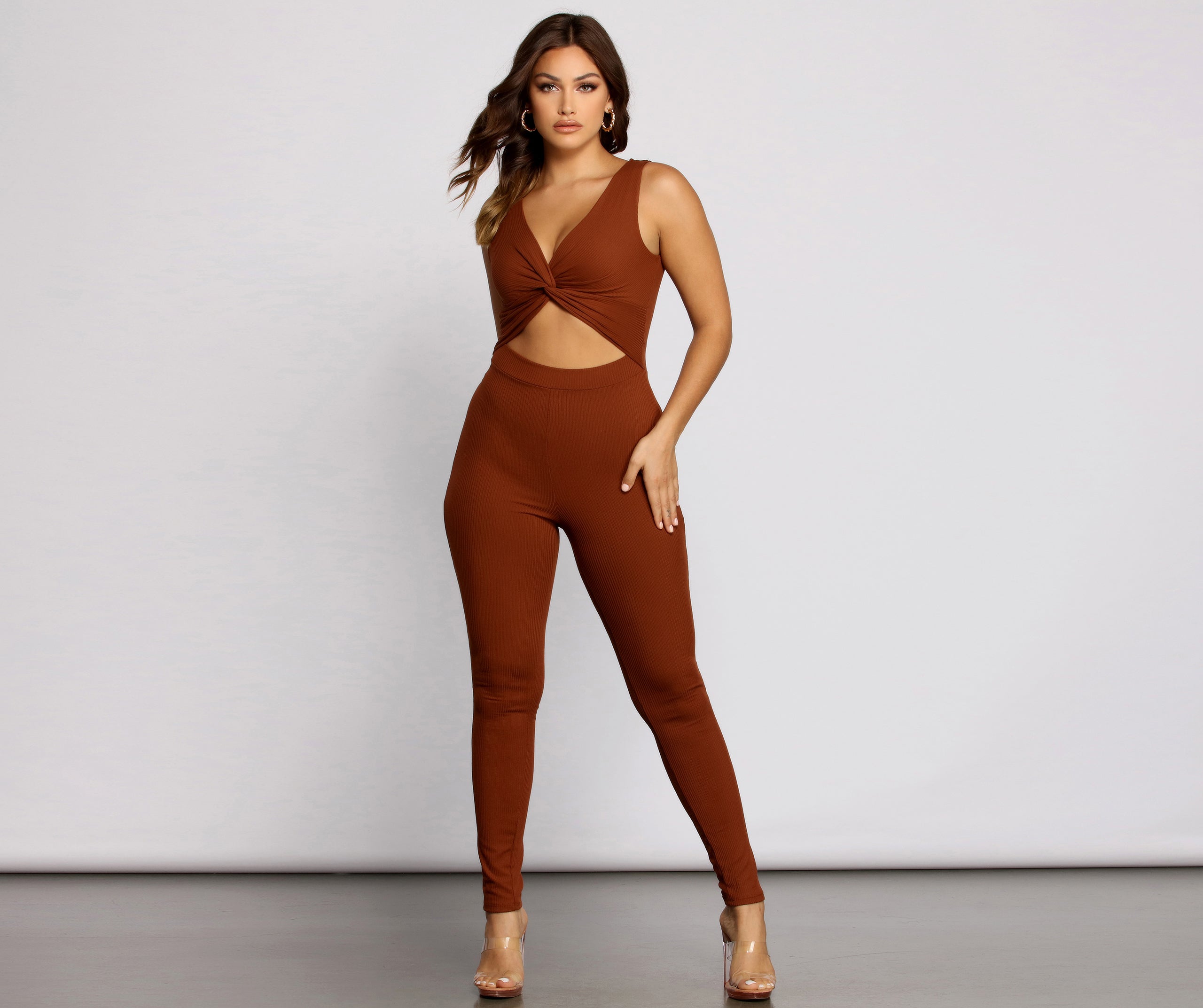 Trendy Twist Ribbed Knit Catsuit