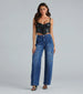 The Trish cargo jeans by Windsor Denim are the perfect base for easy outfit styling! Love your on-trend look in these flattering mid-rise jeans featuring a wide-leg silhouette with cargo-style pockets and seam detailing for extra flair. The jeans are crafted from a dark wash denim fabric with slight color fading and stretch. Complete the look in strappy sandals for a daytime outing or casual dinner!