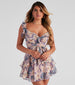 Bring the charm in a ruffled dress that gets those tropical island vibes just right! This vacay-approved dress features a tropical palm-leaf print. a plunging V neckline. ruffled shoulder straps. a cinching tie waist belt. and a flirty skater silhouette. Complete the outfit with pretty wedge heels and fringe earrings.