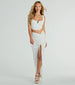 Whether you're heading on vacation or out on the weekend. this linen maxi skirt will help you look chic all season! The high-rise waist and form-hugging fit flatter your figure while the adjustable front drawstring allows for a perfect fit. The high slit adds a touch of drama and the maxi-length hem exudes effortless style. Complete the look in a corset top and wedges.
