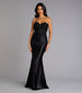 Made for unforgettable entrances. the Valeria satin mermaid gown highlights every curve with its sculpted silhouette and strapless lace-detailed bodice. A sleek finish and floor-sweeping hemline set the stage for pure red-carpet glamour.