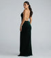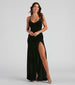 Mesmerize in a formal dress that brings the luxe to your evening! Vega features a sleeveless V-neckline. padded cups. bungee spaghetti straps that cross at the back. bungee bar straps. a high side slit. and an A-line silhouette. The dress is composed of a lined velvet fabric that offers a form-hugging fit with a moderate stretch. Complete look with rhinestone heels and a clutch.Â