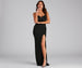 Sparkle up the night in the stunningly chic Vienna formal dress! She features a sleeveless sweetheart neckline. padded cups with a sparkling rhinestone outline along the bust. adjustable spaghetti straps with rhinestone trim. a high waist seam. and a floor-length A-line silhouette with a sultry front slit. Style this dress with radiant embellished earrings and strappy stilettos.