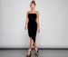 Wrap yourself in a luxe velvet dress that elevates your special occasion outfit. Violette features a sleeveless cowl neckline. adjustable spaghetti straps. a corset-like bodice with flexible boning. a midi length silhouette with wrap hem. The dress is composed of a lined velvet fabric that offers a form hugging fit with a moderate stretch. Complete look with rhinestone heels and a sphere clutch.