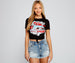 Hey. high roller! Stun with a graphic tee that is part vintage. edgy! The graphic tee features a crew neckline. short sleeves. a graphic that reads: "Las Vegas Trip". an image of a vintage car. and a cropped hem. The tee is composed of a cotton knit fabric that offers a relaxed fit with a moderate stretch. Complete look with high waist shorts and sneakers.