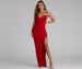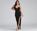 Stun a formal dress that puts you in a league of your own! Wanda features a sleeveless V-neckline. supportive padded cups that eliminate the need for an additional bra. and adjustable spaghetti straps. The bodice features a timelessly chic corset design with flexible boning that provides structure. The skirt features a curve-hugging A-line style with a daringly high side slit that showcases a hint of leg. The dress is composed of a crepe fabric that offers a form-hugging fit with a moderate stretch. Complete the look with rhinestone heels and a faux fur wrap.