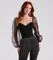 This on-trend sheer sleeve blouse will make your date night outfit whimsical and chic! It features a sweetheart neckline with a padded bust. long sheer organza puff sleeves to add that dramatic flair. and a fitted mid-length hem. The crepe fabric offers a moderate stretch. Complete your look with a mini skirt and mules.