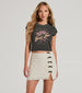 Rock and roll on your world tour in this cute graphic tee! It boasts cap sleeves. a crew neckline. a rose graphic front design with a script that reads "Wild At Heart Rock & Roll". and a modern raw cut cropped hem. Complete the look in jean shorts for casual plans!