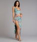Elevate your fierce style in this leopard mesh midi dress for a chic cocktail bar. Adorned with a chain-trimmed halter strap. this dress features a sultry cutout bodice with a hoop insert and ruffled trim slit that shows some skin.