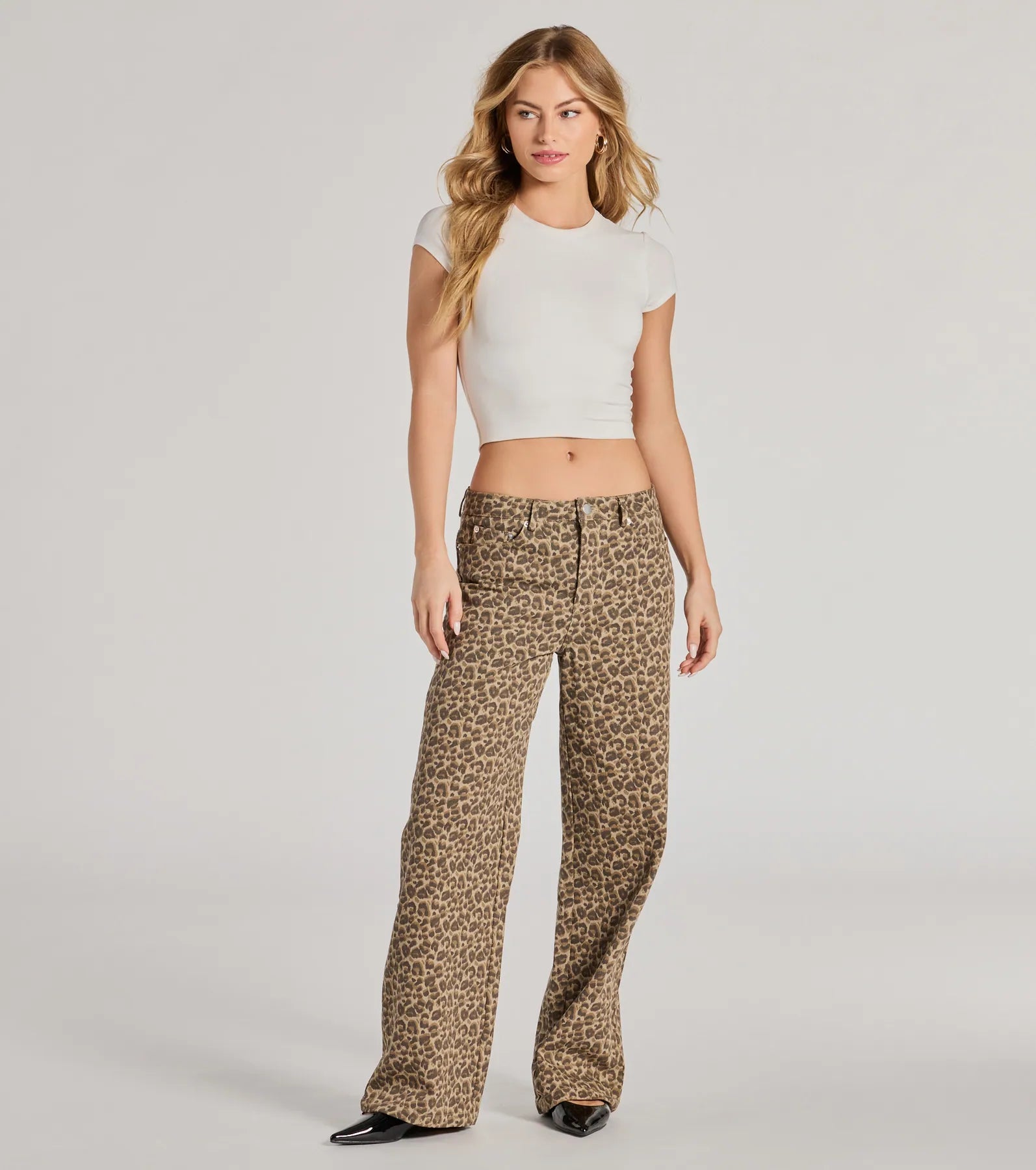 These wildly chic leopard pants are all the rage this season! Featuring a trendy mid-rise waist and a baggy leg fit to give every outfit a cool vibe. Complete the look with a crop tee.