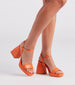 These faux leather heels work every angle for your feet! They feature a square toe. wide toe strap. an ankle strap with buckle closure. a platform sole. and a square-shaped chunky block heel. Style with a mini tote bag to complete the fab look!