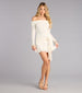 Soft meets sultry in this rib knit mini dress made for showing a little shoulder. The foldover neckline. waist wrap belt. and ruffled hem bring that flirty-feminine vibe—perfect for when cozy still calls for a look.
