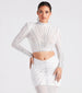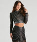 Gorgeous rhinestones wrap around your curves on this crop top featuring long sleeves with shoulder pads. a crew neck. and a cropped hem on sheer mesh fabric with partial lining. Complete the look with the matching maxi skirt for a dressy birthday dinner!